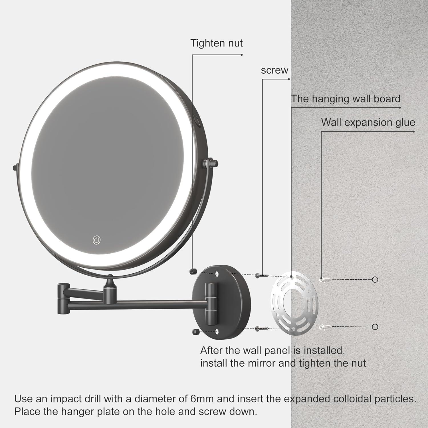 🔍𝐃𝐮𝐚𝐥-𝐒𝐢𝐝𝐞𝐝 𝐌𝐚𝐠𝐧𝐢𝐟𝐢𝐜𝐚𝐭𝐢𝐨𝐧 𝐟𝐨𝐫 𝐏𝐫𝐞𝐜𝐢𝐬𝐢𝐨𝐧: The bathroom mirror for wall offers both 1X and 7X magnification. The 1X side is great for general makeup application and hairstyling, while the 7X side is perfect for precise tasks like applying eyeliner or tweezing. To avoid dizziness, keep your face within 6 inches of the 7X magnifying mirror. This dual-sided design gives you flexibility for both detailed work and broader views.