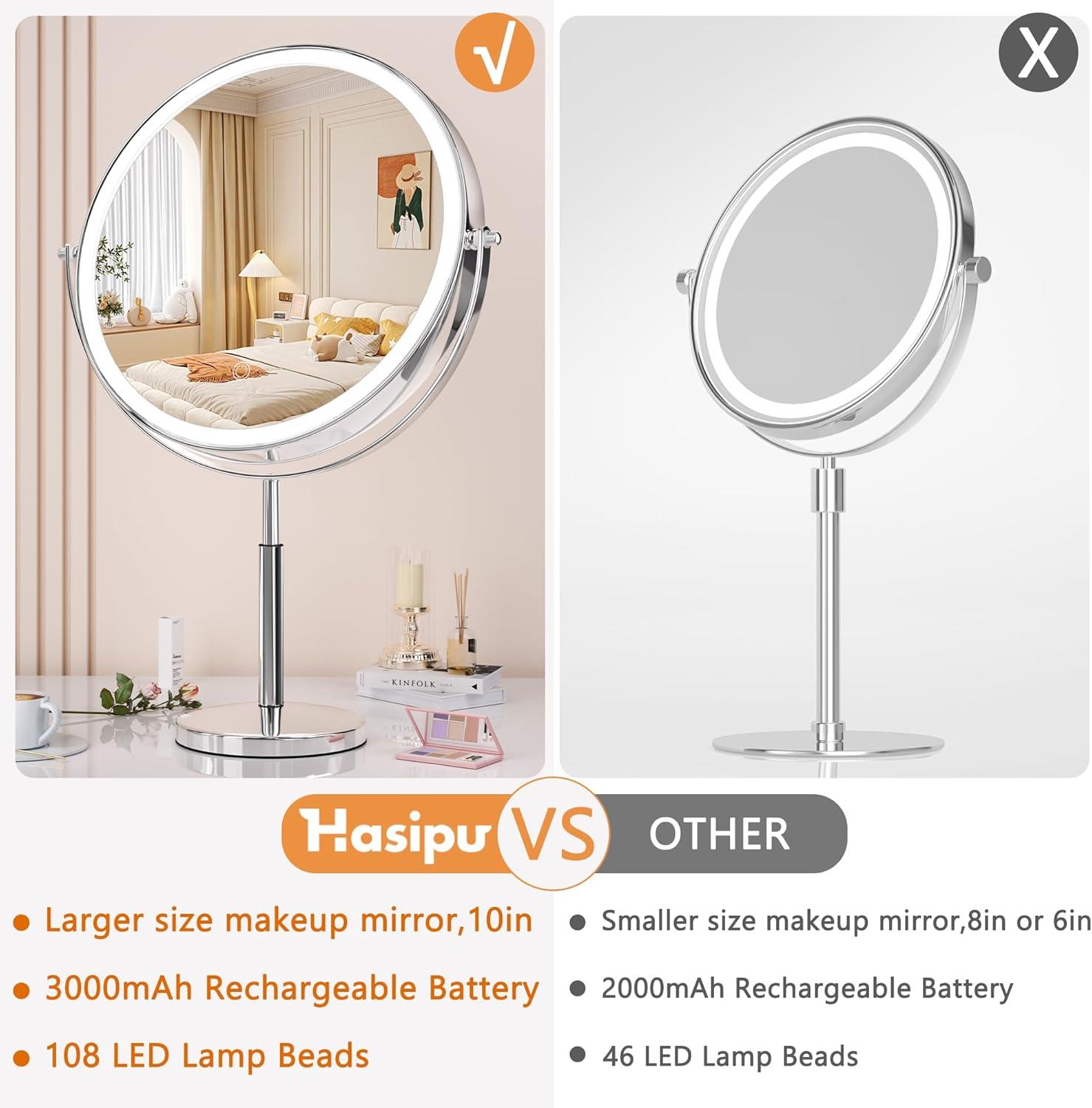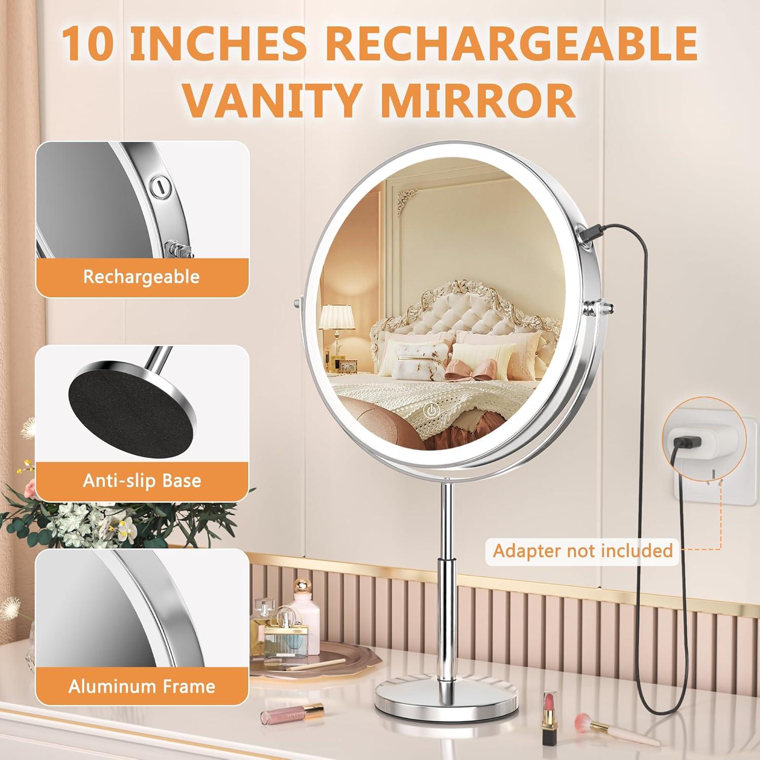 PROFESSIONAL 10″ LED LIGHTING – Makeup mirror surface provides full-face clarity with bright LED illumination. Perfect size for detailed makeup application, skincare routines, and grooming tasks with crystal-clear reflection quality.