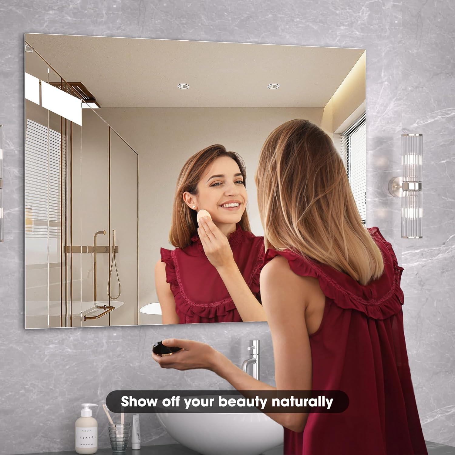 【Frameless Design】Elevate your home decoration with this frameless bathroom mirror. Its minimalist design adds sophistication to your living space. It is suitable for a variety of occasions, including entryways, bedrooms, and especially as a bathroom vanity mirror to enhance the ambiance of your bathroom