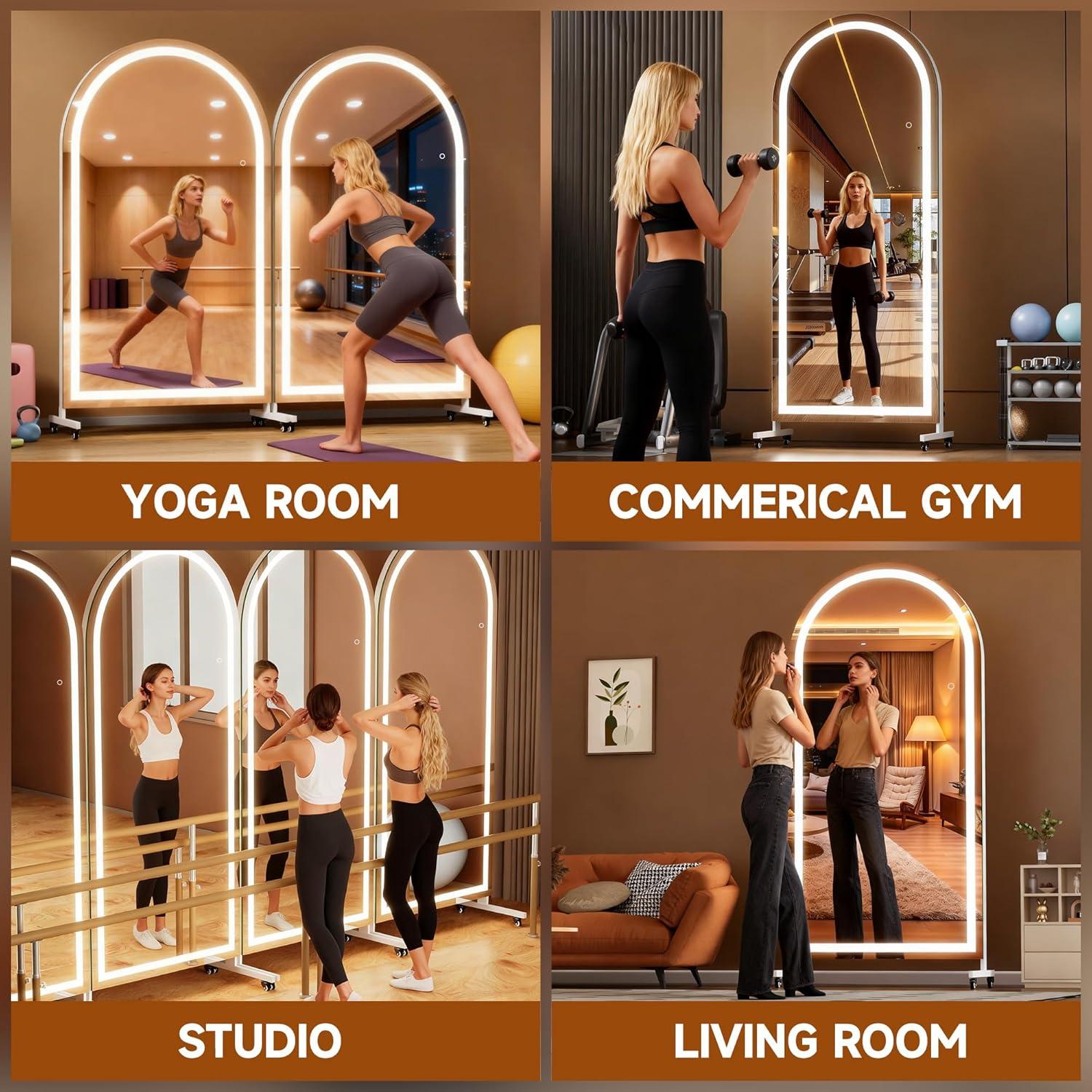 Elegant Arched Design with Modern Glow – The soft arch top paired with a glowing LED edge brings a touch of modern luxury to your yoga studio, dance room, or bedroom. It enhances your décor while keeping your reflection crystal clear.