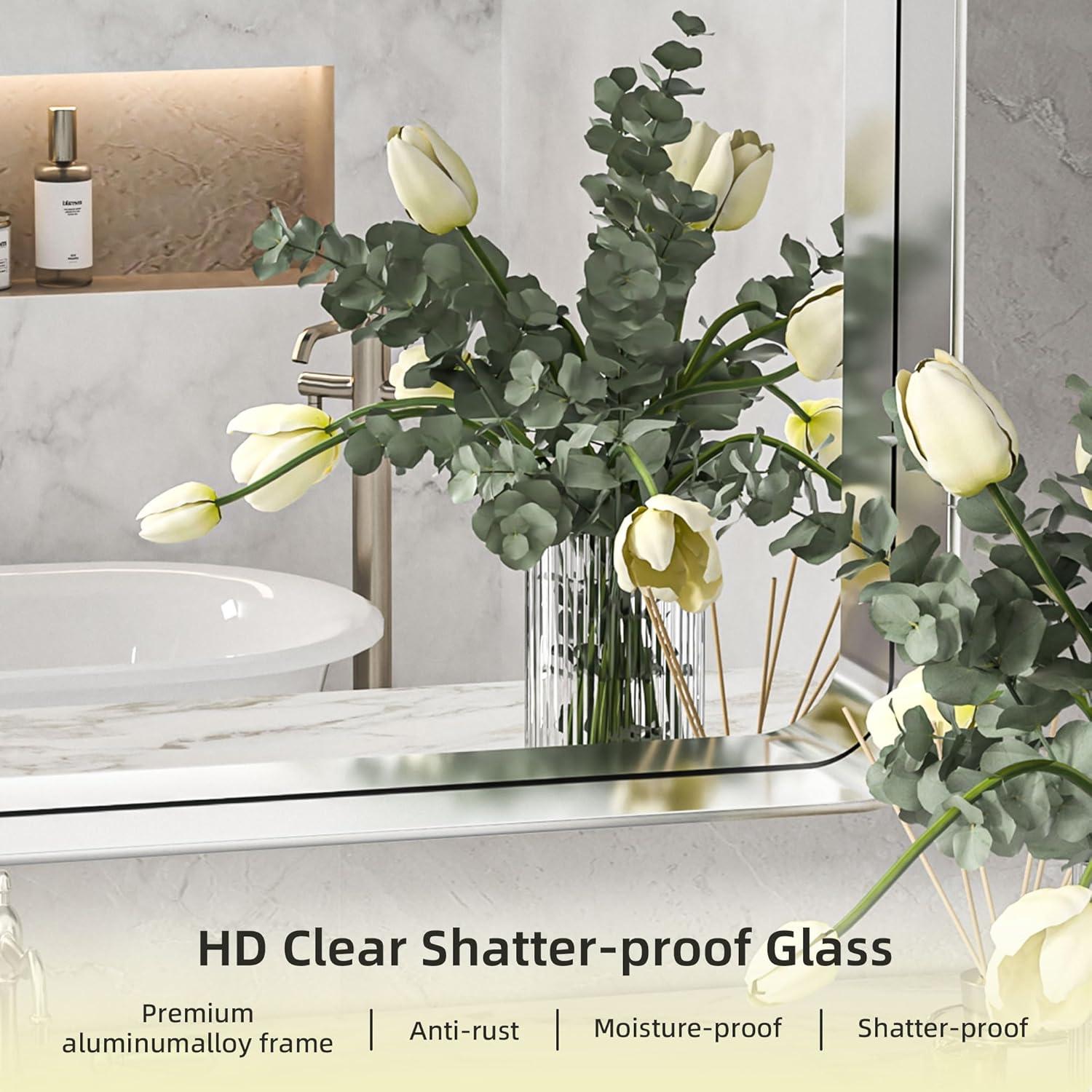 Hasipu Black Bathroom Over Sink Mirror 41×21 Inch Rounded Rectangle Vanity Mirror Metal Framed Wall Mirrors Anti-Rust Surface Mount (Hangs Horizontal or Vertical)(Silver)