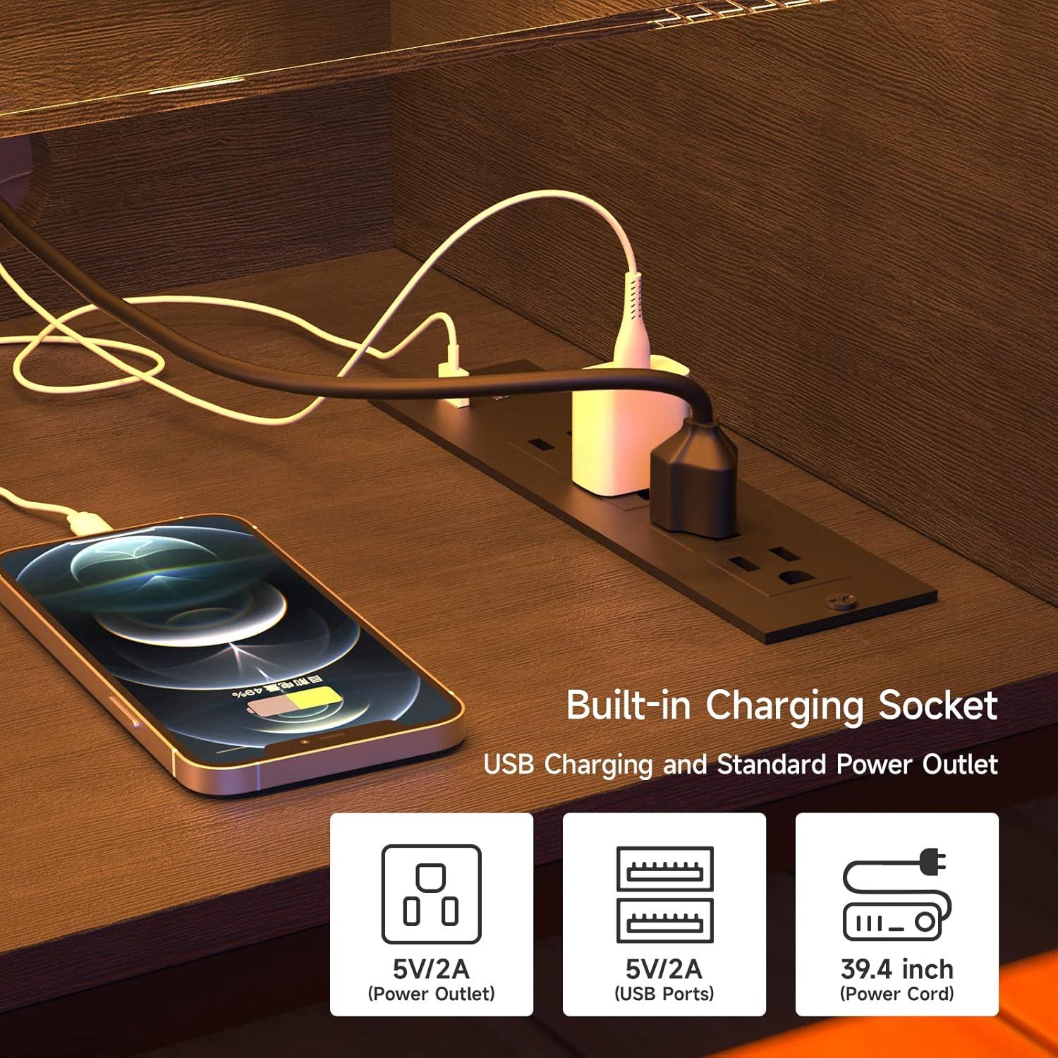 Hasipu Black Tall Smart Nightstand with Charging Station and Drawer for Bedroom,LED Bedside End Table with Storage