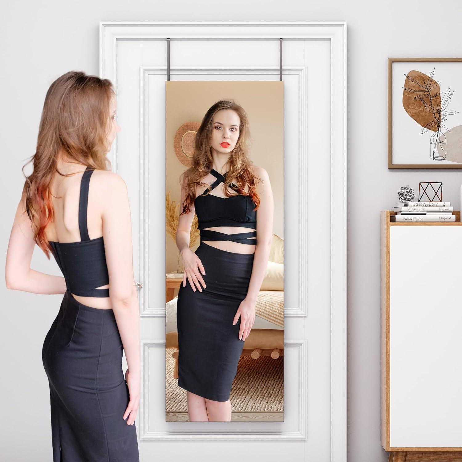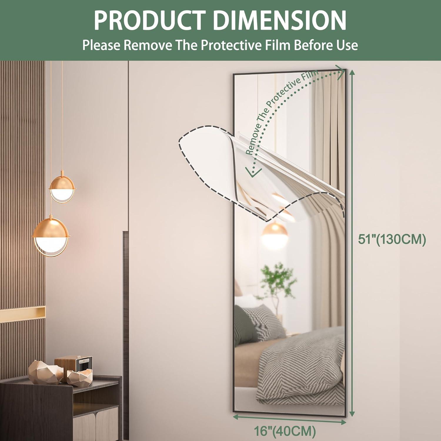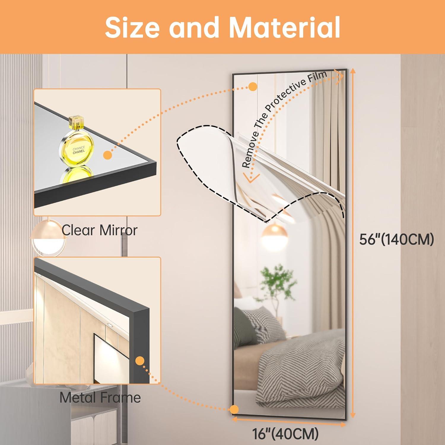 【Full Length Mirror】The size of the door mirror is 51″ x 16″, it can not only show full body when you need to decide on your outfit or make up, but also provide more expansive visuals and enhances the sense of space.
