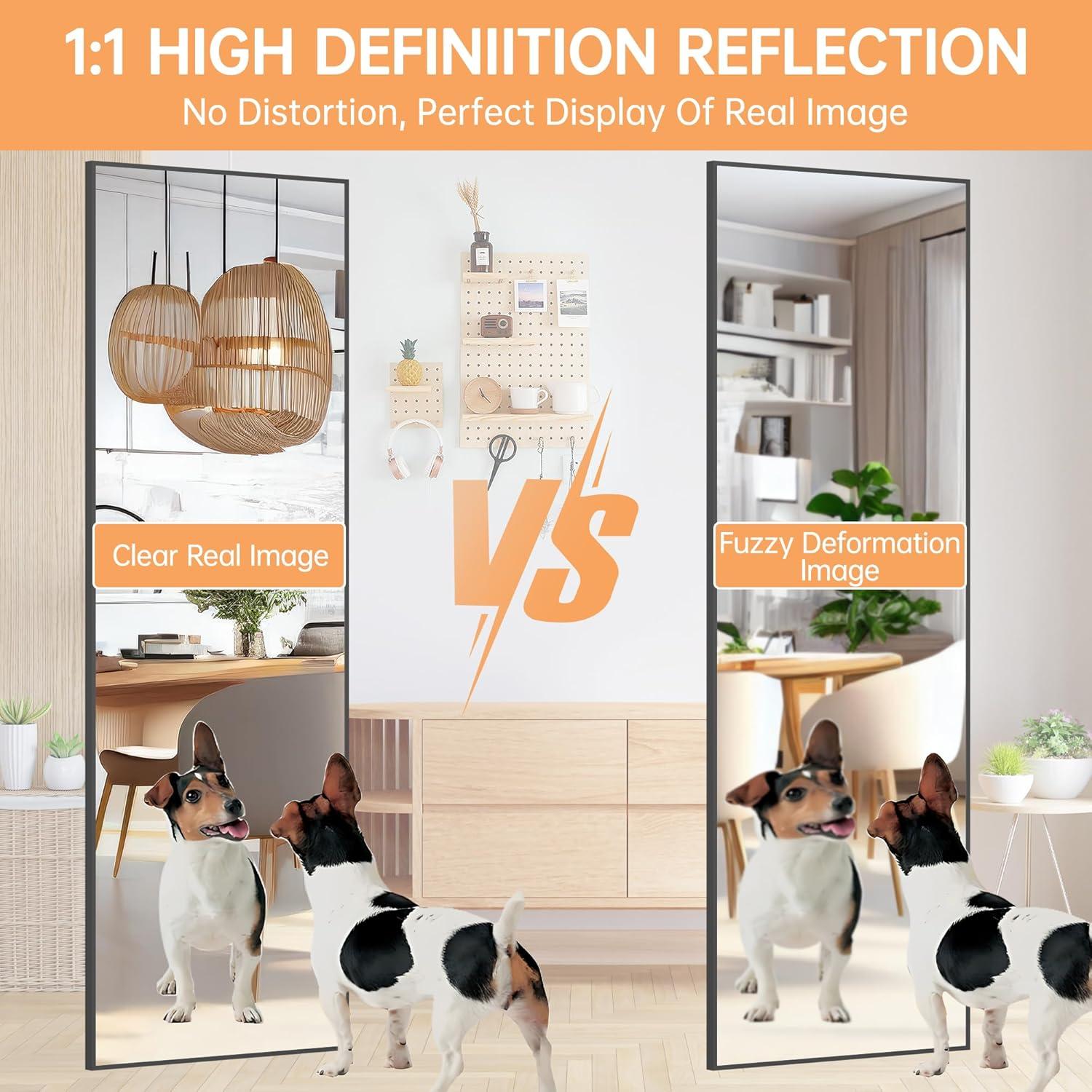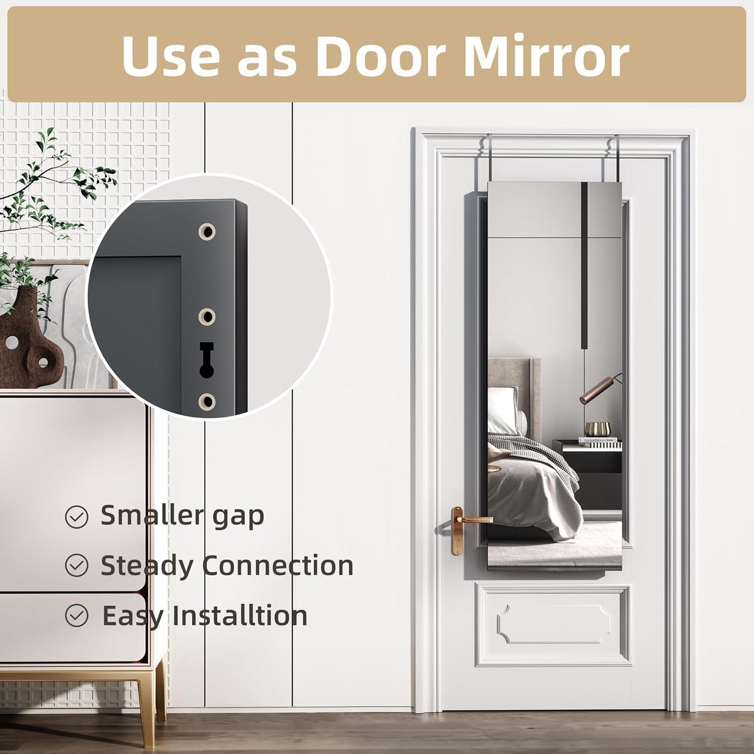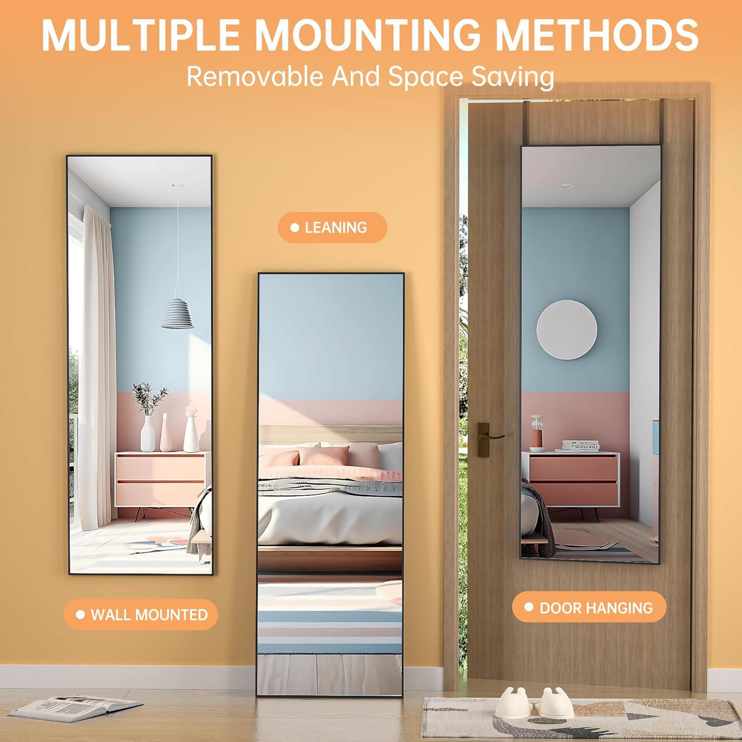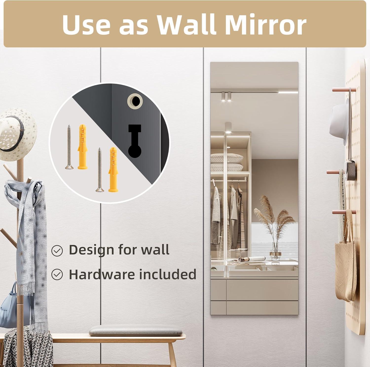 【Full Length Mirror】The size of the door mirror is 51″ x 16″, it can not only show full body when you need to decide on your outfit or make up, but also provide more expansive visuals and enhances the sense of space.
