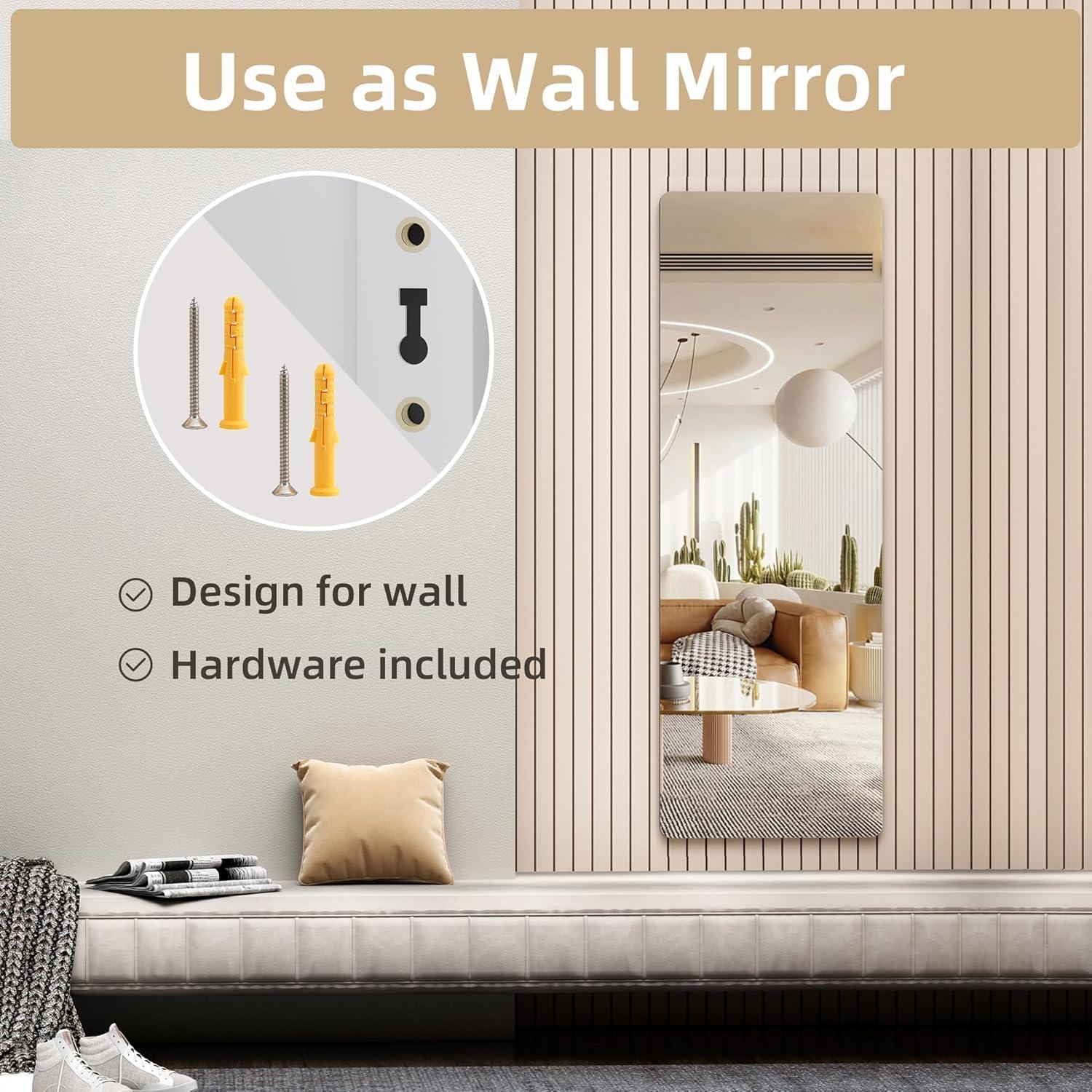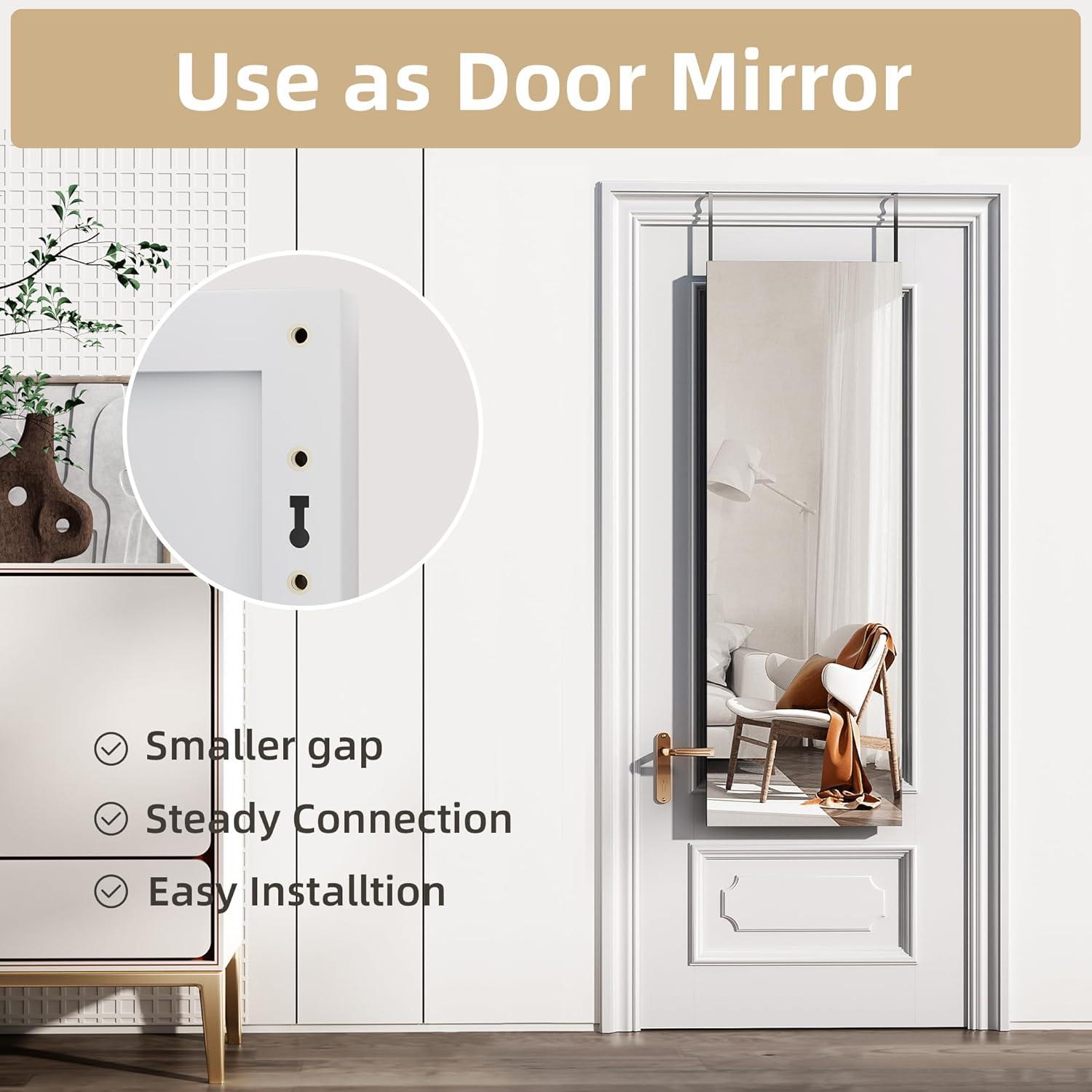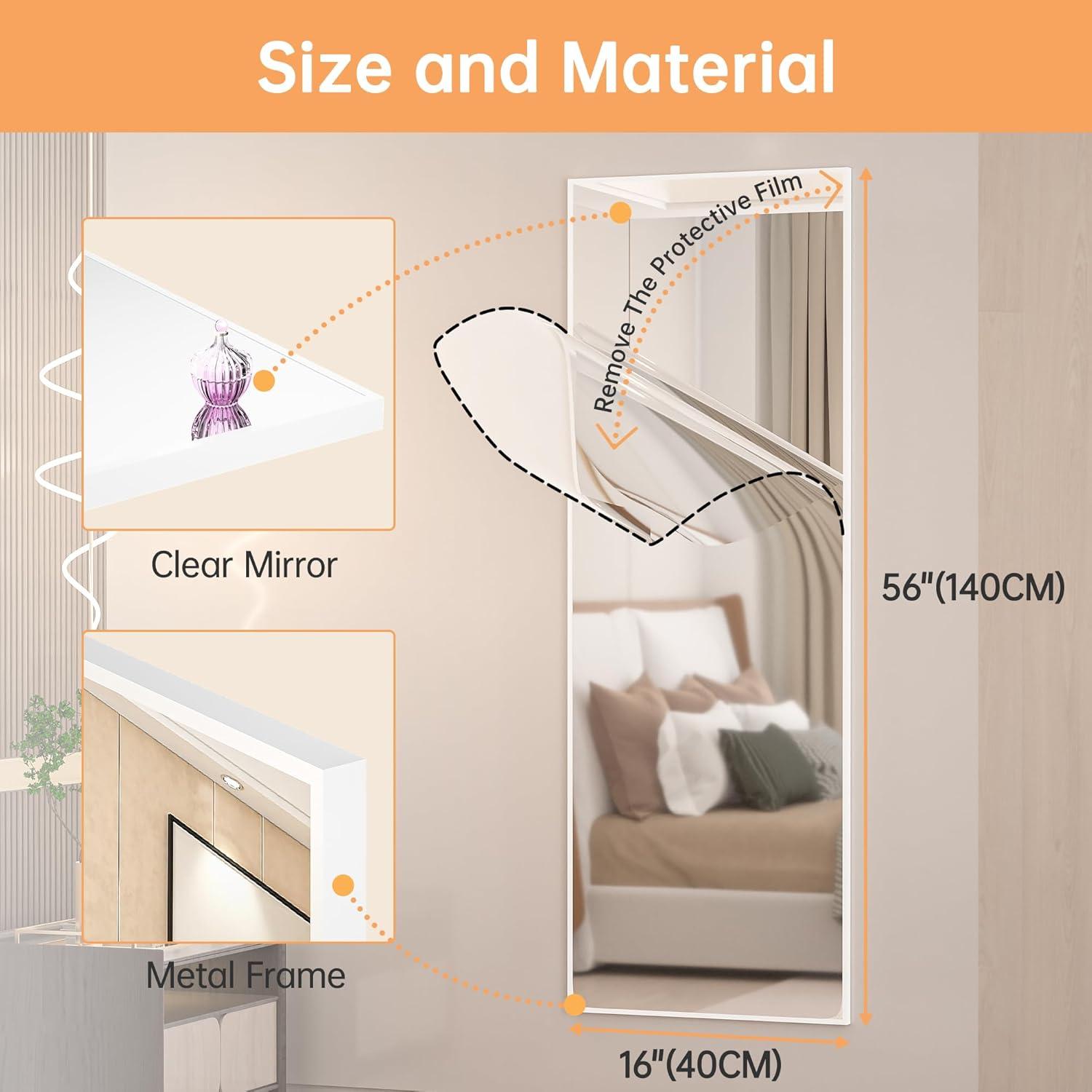 【Full Length Mirror】The size of the door mirror is 51″ x 16″, it can not only show full body when you need to decide on your outfit or make up, but also provide more expansive visuals and enhances the sense of space.