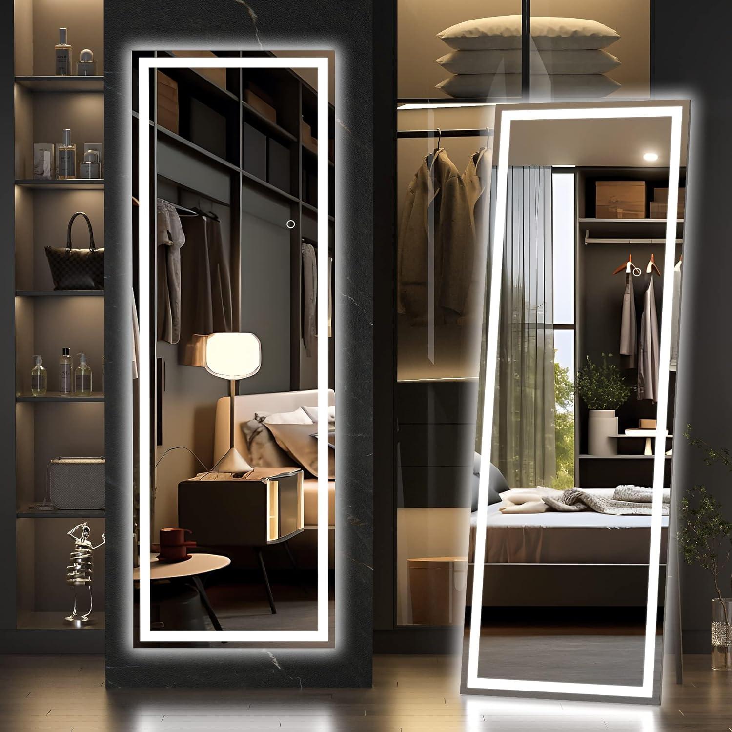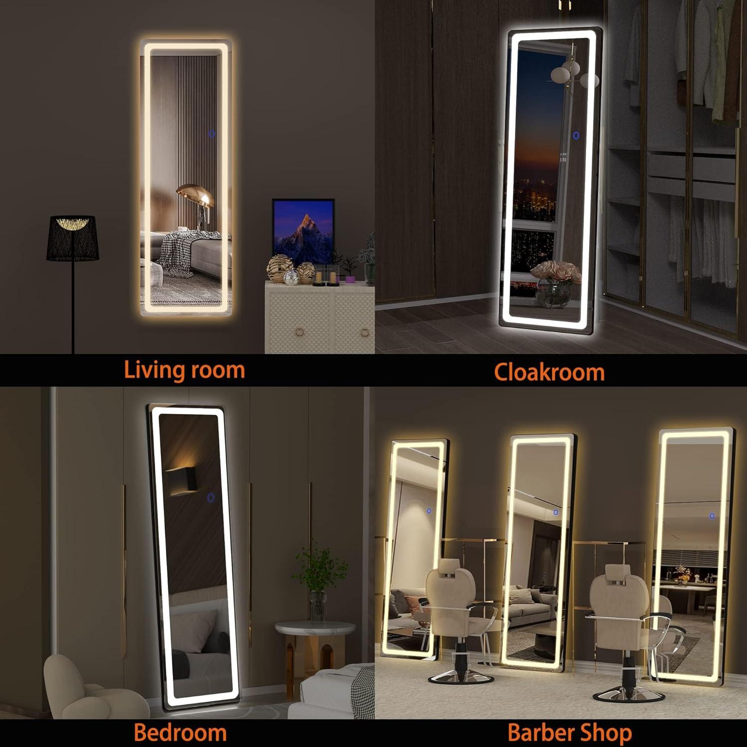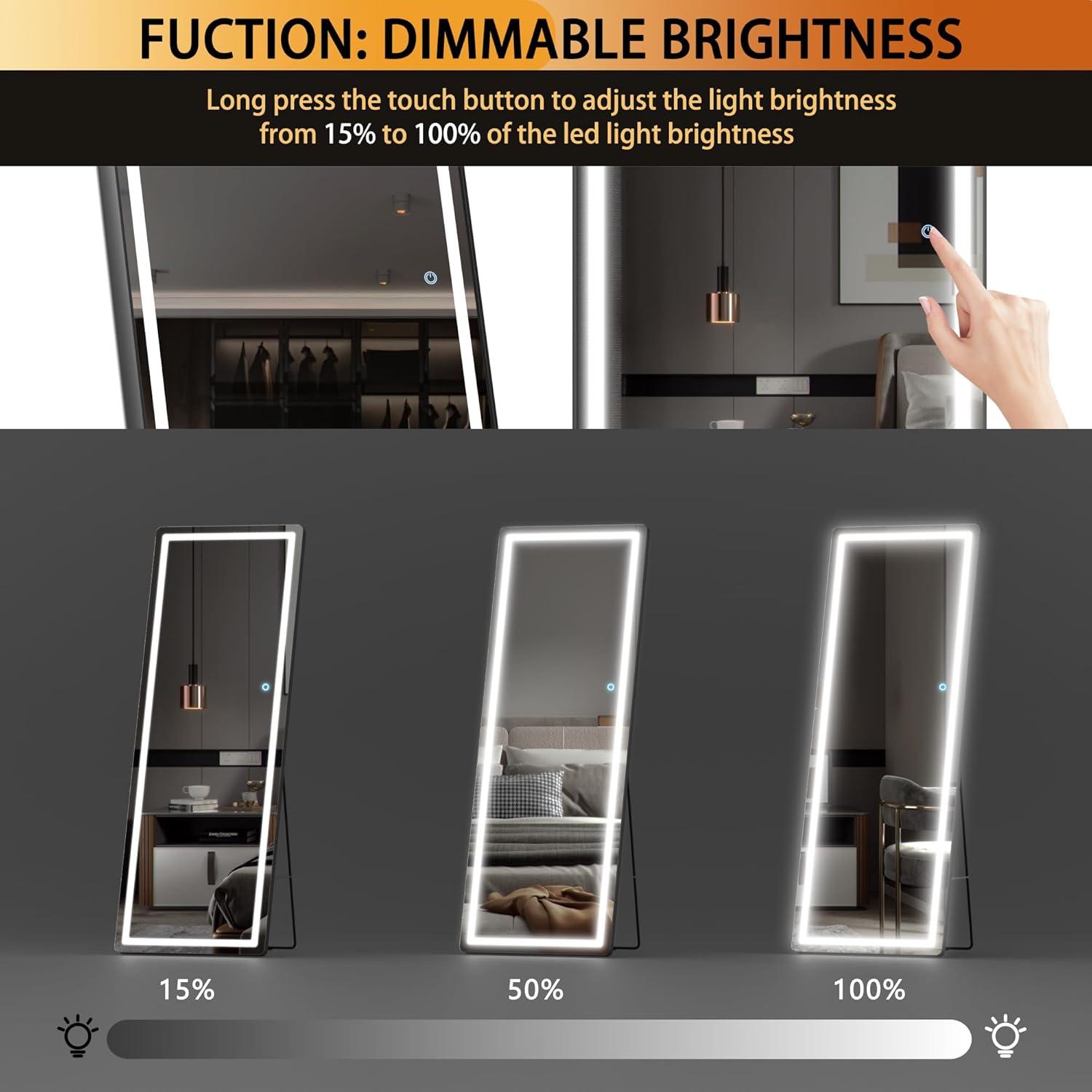 【Dimmable & 3 Color Temperature】This lighted full length mirror is multifunctional. You can press the button to change the color temperatures: Warm(3000K), natural (4000K) and white(6000K). You can also dim the brightness to your comfortable level. All these will be easily controlled by the touch button.