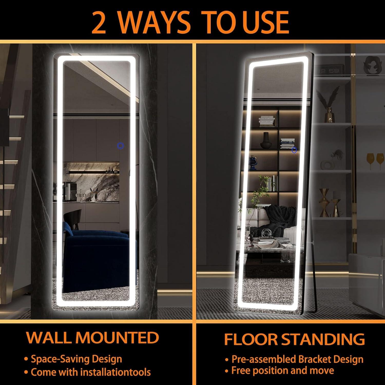 【Dimmable & 3 Color Temperature】This lighted full length mirror is multifunctional. You can press the button to change the color temperatures: Warm(3000K), natural (4000K) and white(6000K). You can also dim the brightness to your comfortable level. All these will be easily controlled by the touch button.