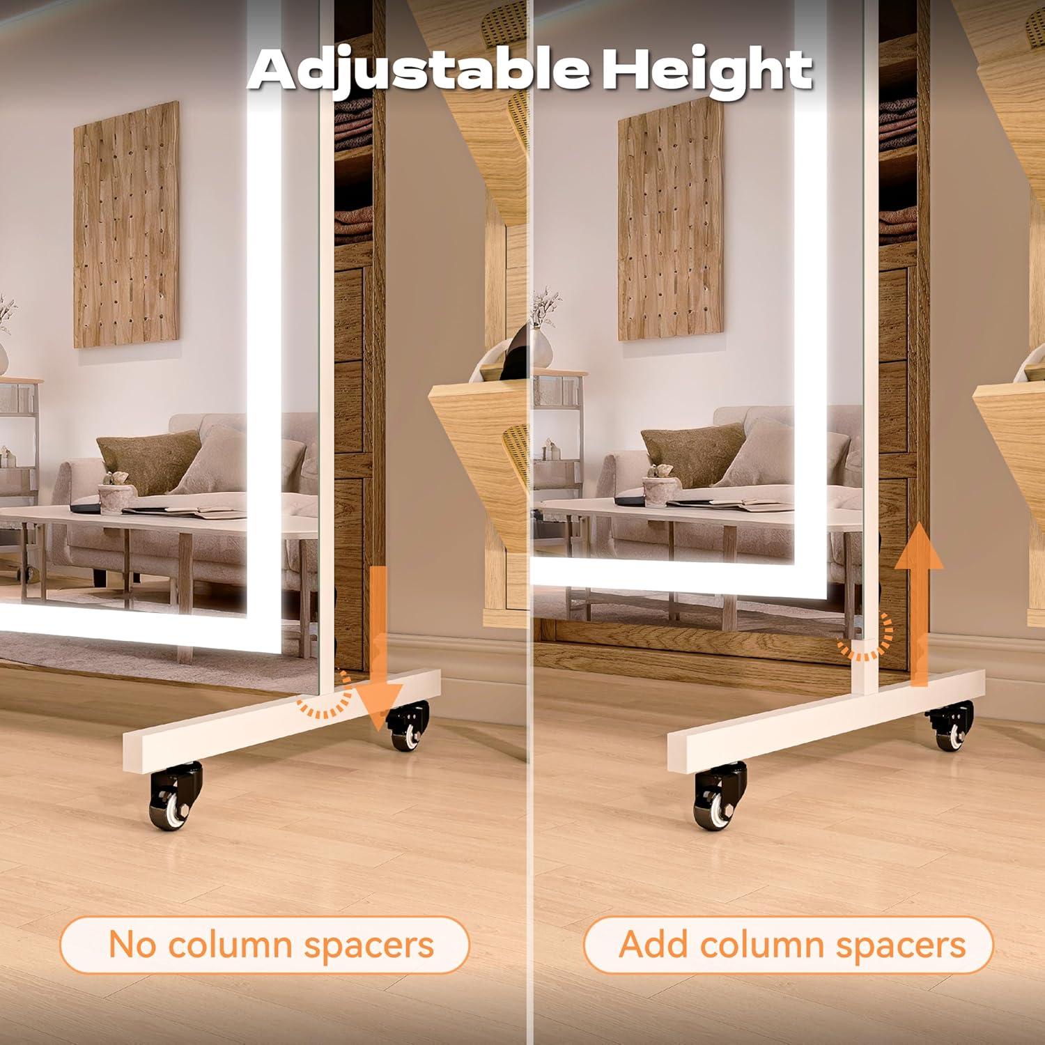 👍【Rolling Design for Easy Mobility】Equipped with wheels at the base, this mirror is easy to move around, allowing you to place it wherever needed without hassle. The installation accessories are included. (The base is detachable, and the gourd-shaped hanging hole on the back of the mirror can be used for wall hanging.)