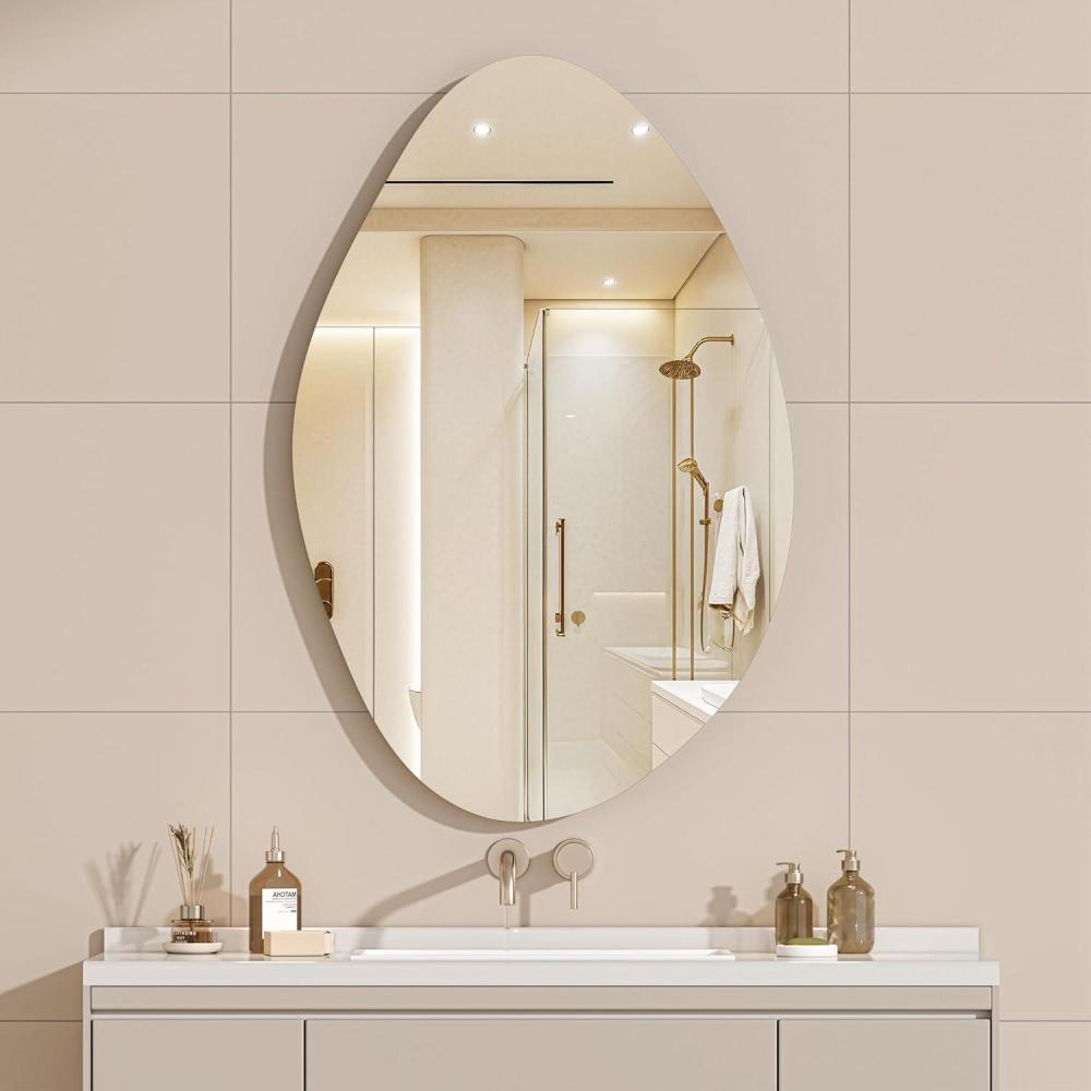 SPACE-EXPANDING MAGIC: Maximize visibility with edge-to-edge reflection! This irregular mirror’s 36″x24″ frameless surface visually enlarges bathrooms and bedrooms while complementing modern decor