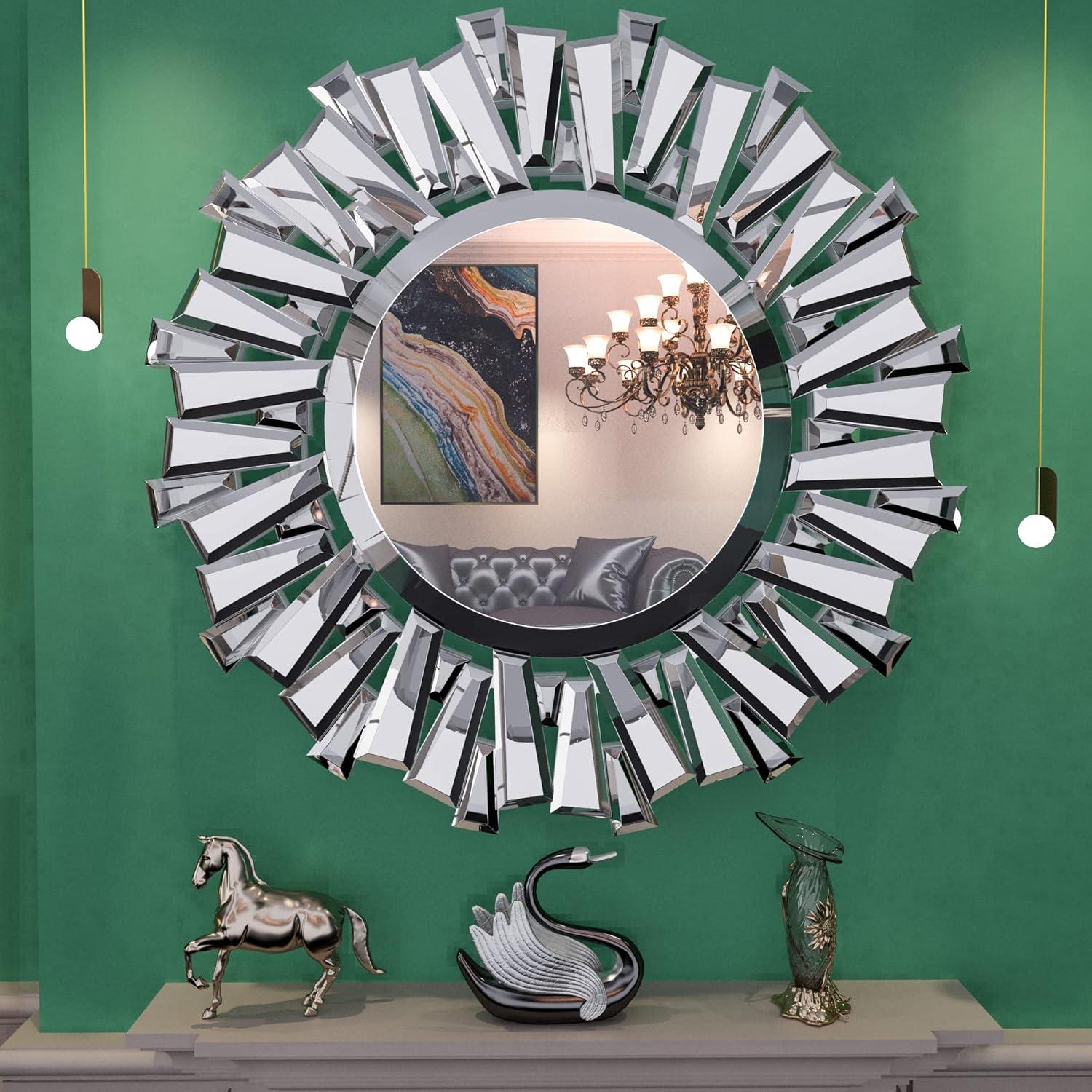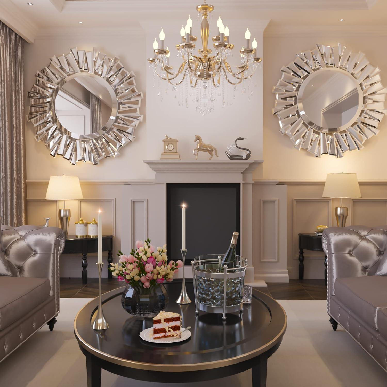 【GORGEOUS DESIGN BRIGHTEN UP YOUR HOME】: Round decorative mirror is a perfect decorator for living room,dinning room,bedroom,entrance hallway,fireplace and so on. Its large reflective surface that can project light around the room, making it easy to brighten your home and give a better sense of light and space.