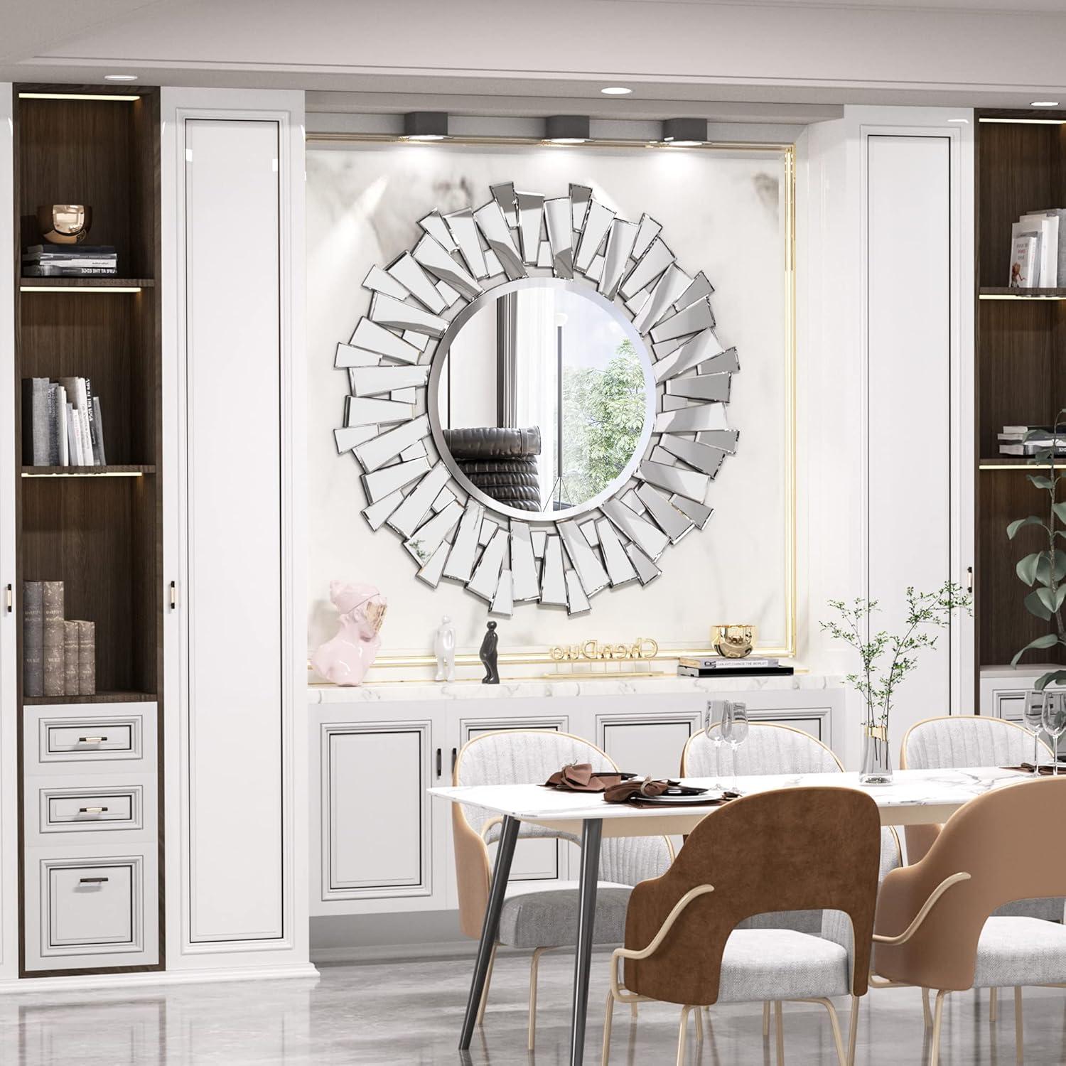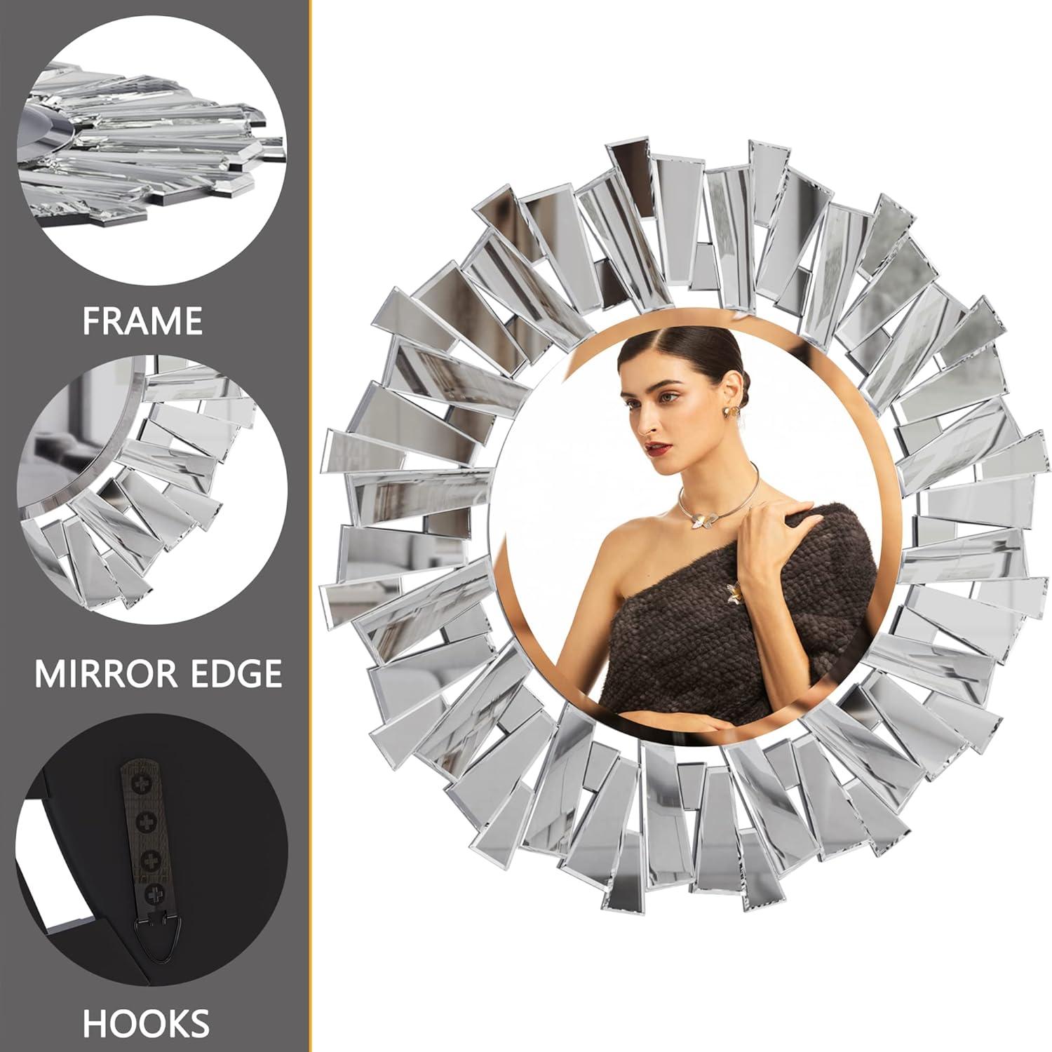 【TWO COLORS TO CHOOSE FROM】: The mirrors for wall decor offers two colors to choose from-white and gray, you can choose the perfect color to match your furniture style. The mirror wall decor 32″ Diameter