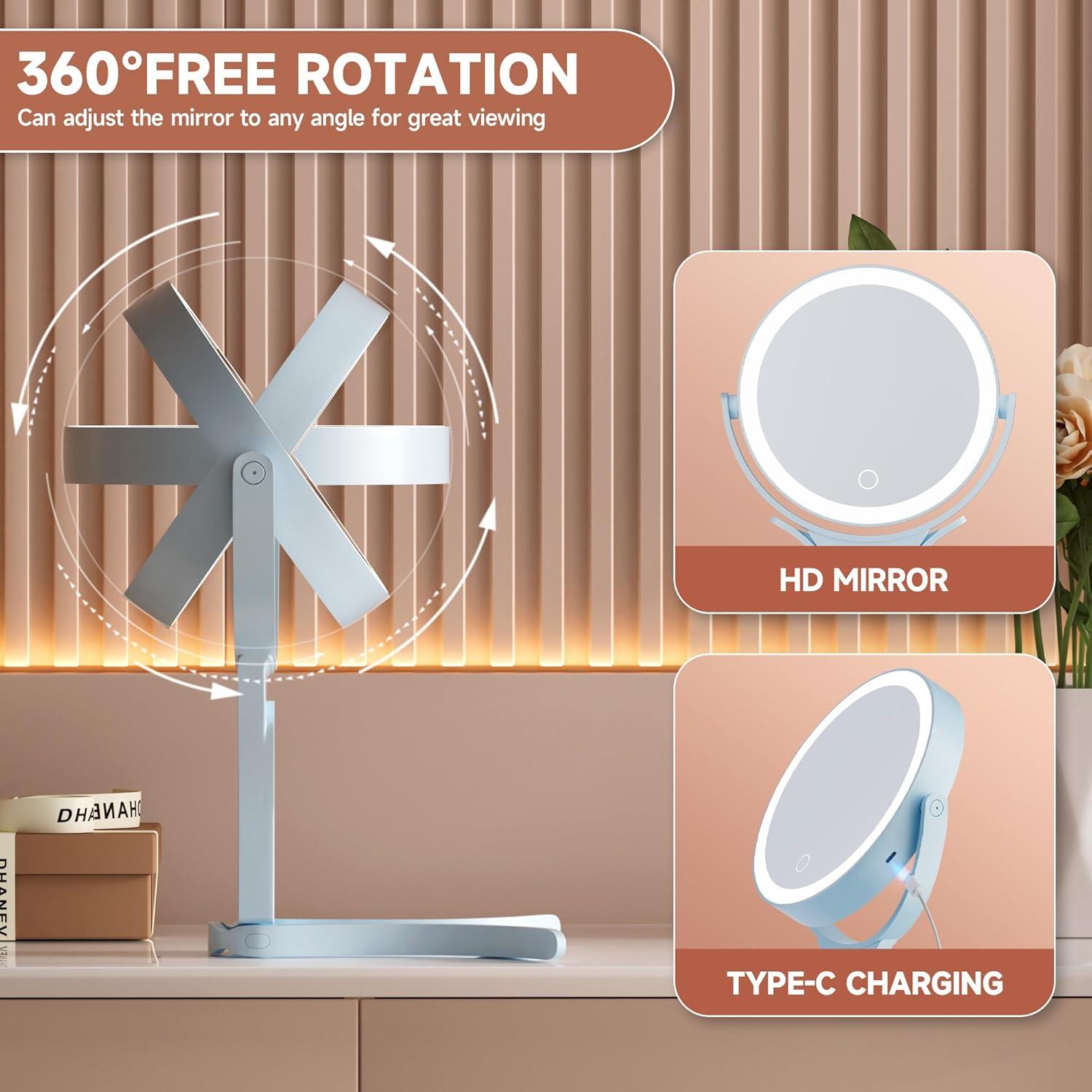 3-in-1 Travel Mirror: This is not your ordinary travel makeup mirror. Its 360° rotating mirror with built-in lights allows for instant switching between handheld, desktop, and hanging modes. Place it on your hotel desk for a detailed makeup application, hold it for a quick touch-up, or hang it on any small bathroom hook or door. Additionally, in desktop mode, it doubles as a handy phone stand, enabling you to watch makeup tutorials hands-free or take video calls while you get ready