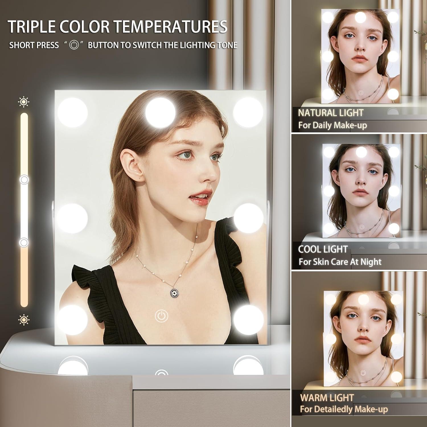 💗【Brightness Adjustable & 3 Color Lighting Modes】Select your favorite lighting with the touch button, three color temperature options from warm light (3000K), natural light (4500K) to cool light (6000K), and also supports 20% – 100% brightness adjustment ; simulating lighting in various occasions to meet personal makeup needs.