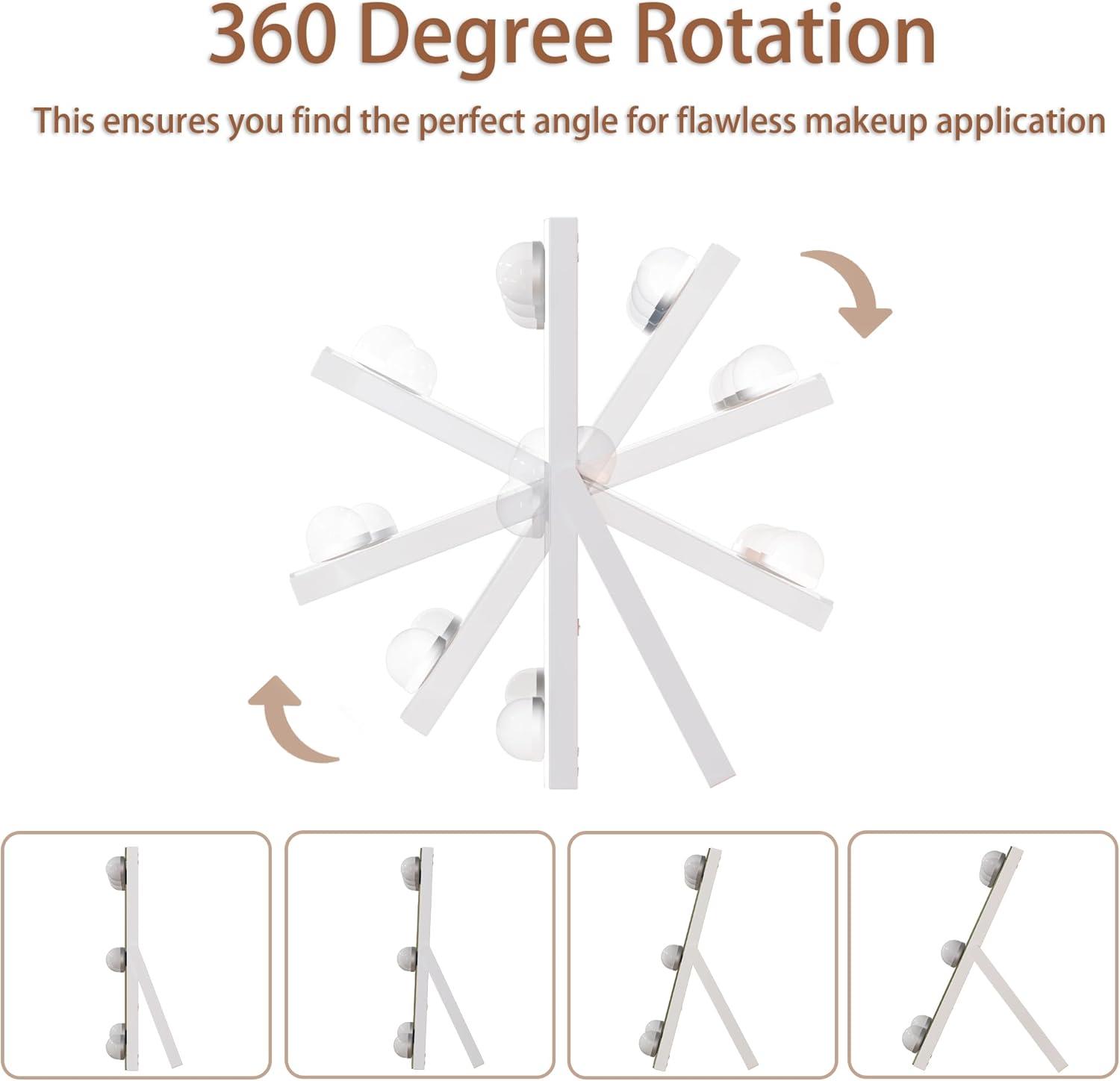 💗【360°Rotation】360 degree free rotation can allows you to place this lighted make up mirror swiveled to each side easily and help you allows you to see more detail, convenient for you to select the best angle or position.