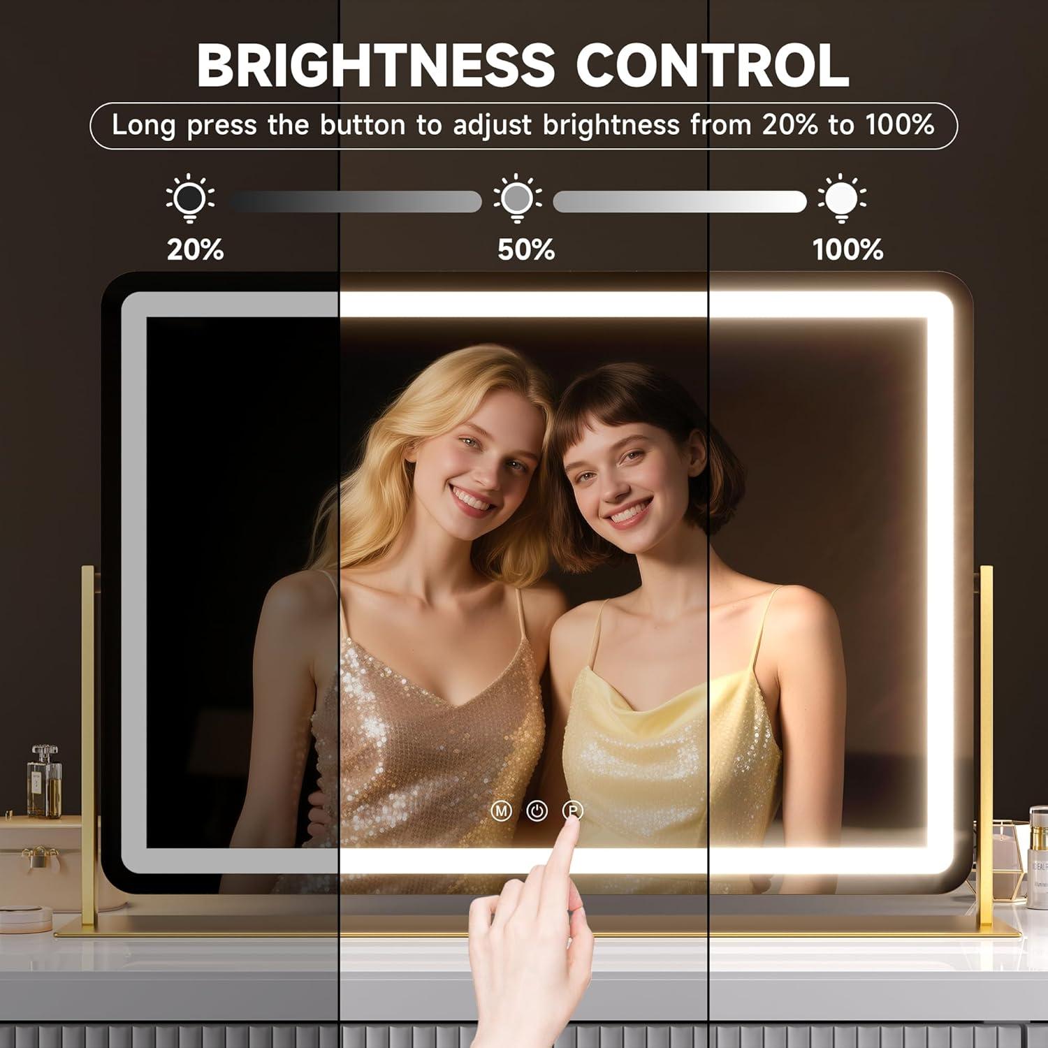 【Smart Touch Control】This makeup mirror with lights has a smart touch buttons, turn on/off the light by touching the sensor switch, Shor press to change the color modes, long press to adjust the led brightness.