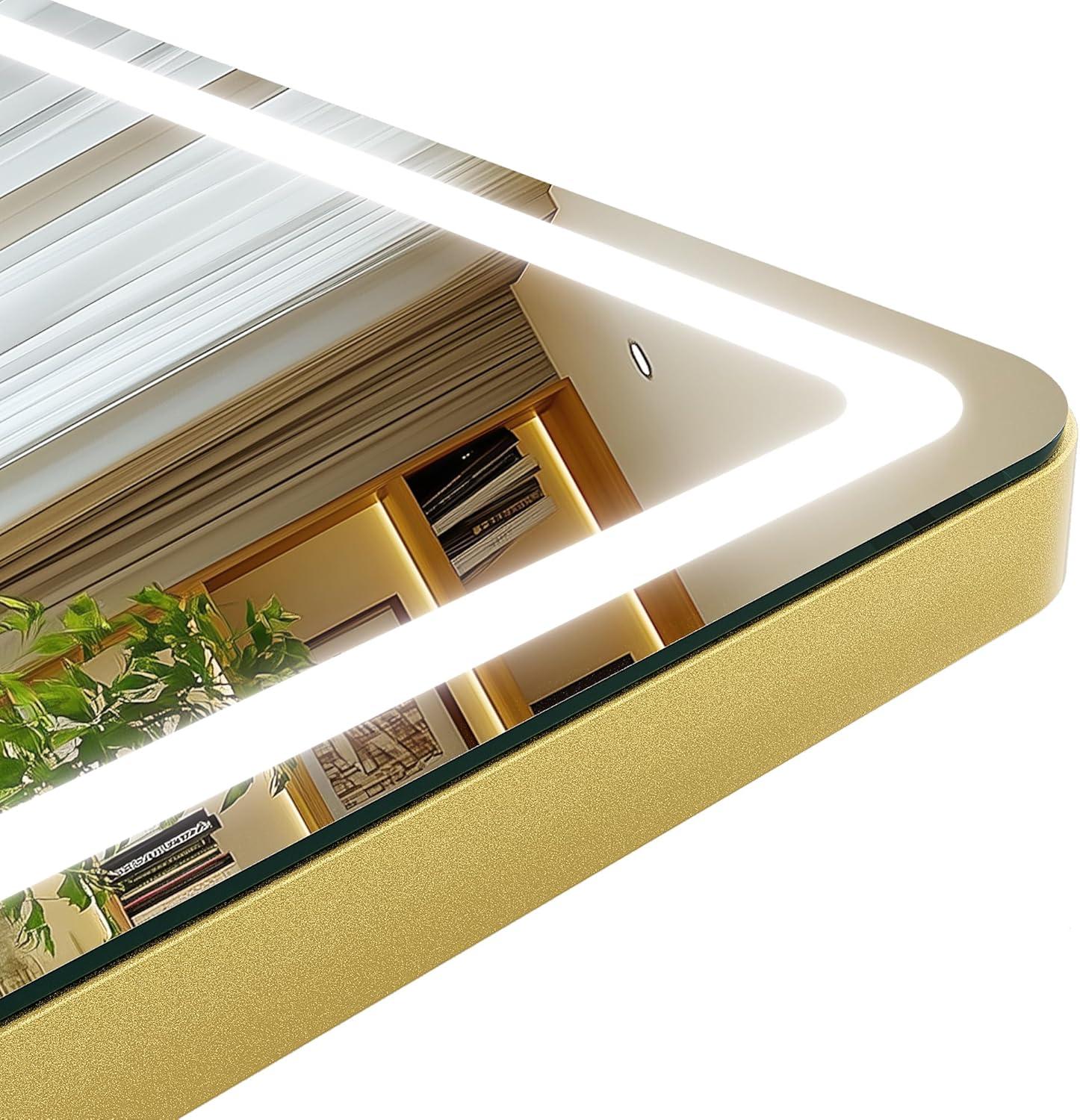 【Aluminum Alloy Frame and High-Quality LED Light Strip】The metal frame and base structure are stable. The mirror is made of high-quality materials, with a mirror thickness of 3mm, which is safe to use, with clear mirror reflection and especially not easy to distort. LED lamp beads, 180 per meter, lifespan up to 50,000 hours; no need to replace the light strip.