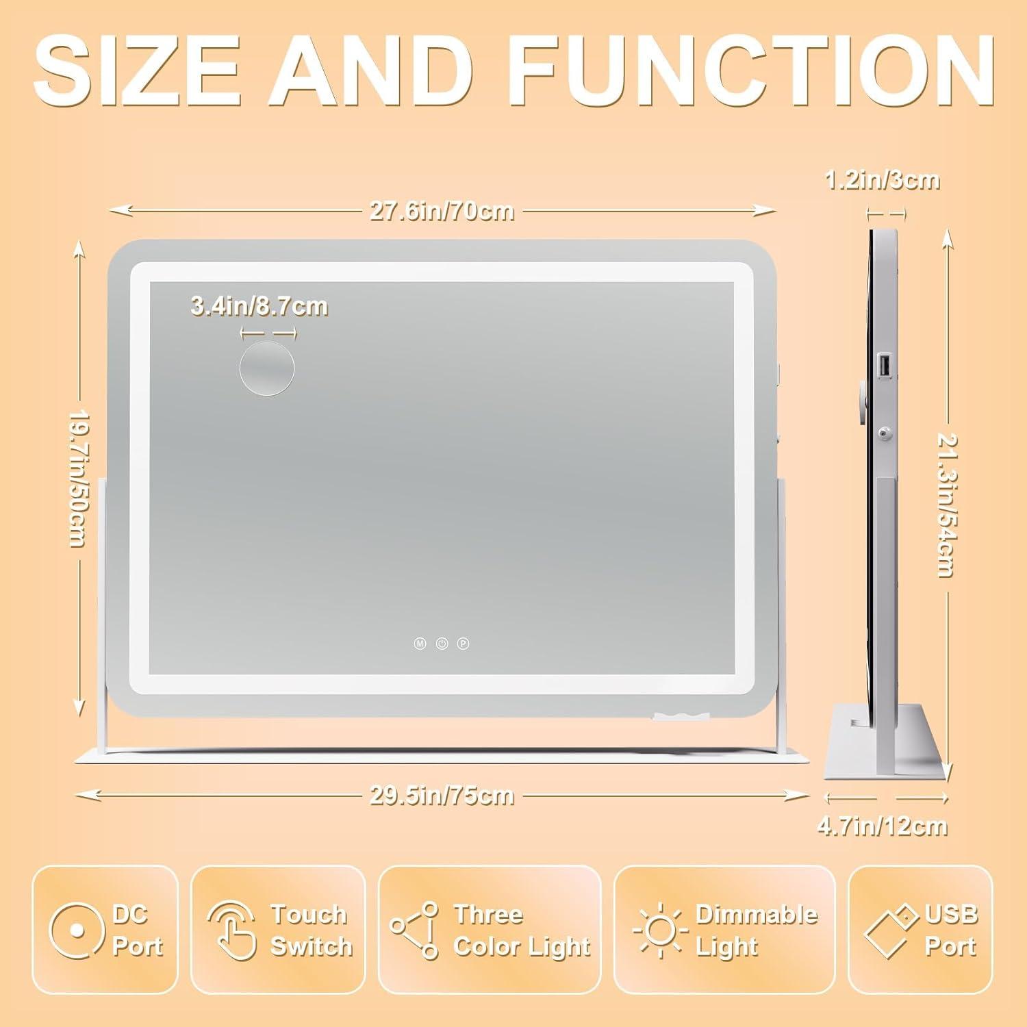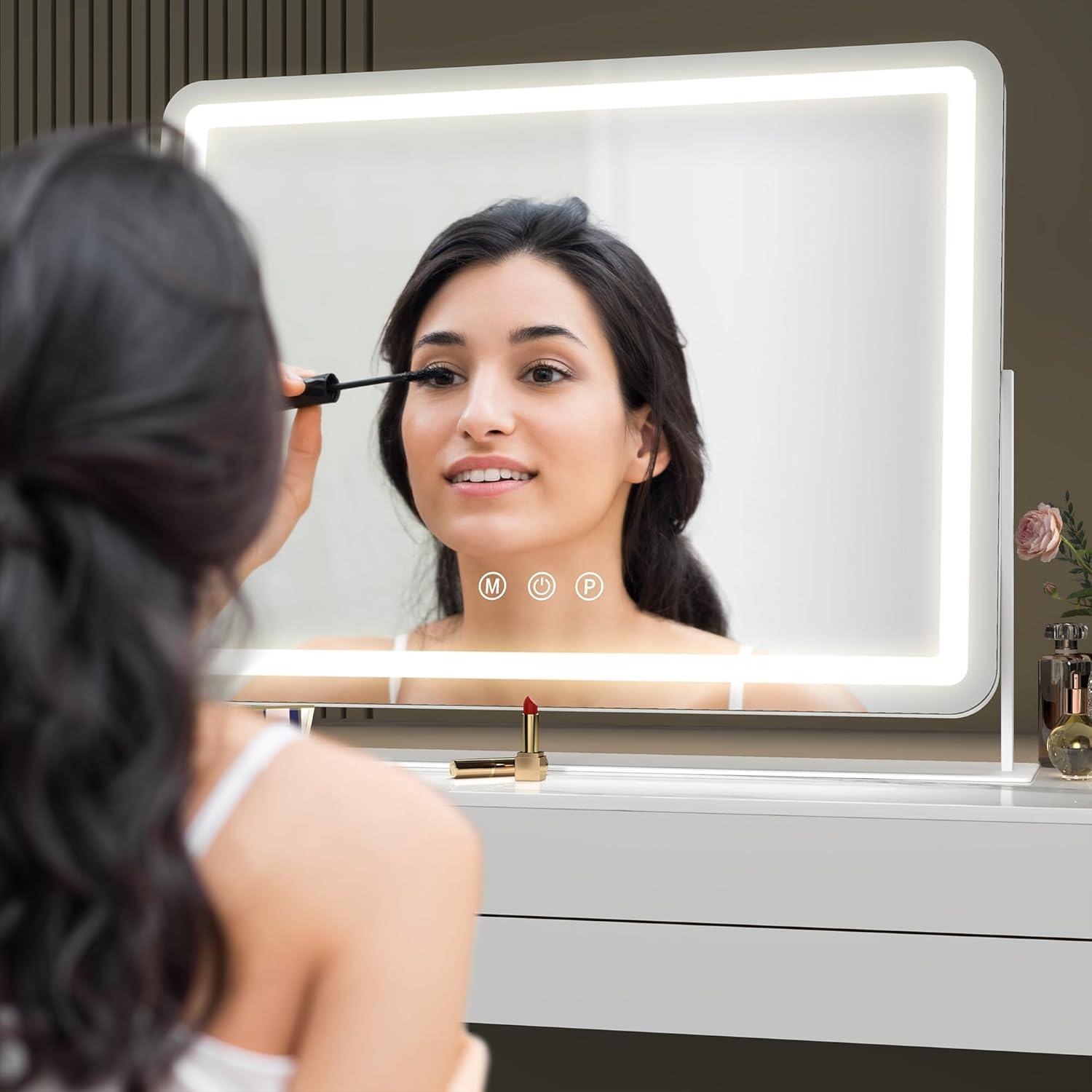 【Smart Touch Control】This makeup mirror with lights has a smart touch buttons, turn on/off the light by touching the sensor switch, Shor press to change the color modes, long press to adjust the led brightness.