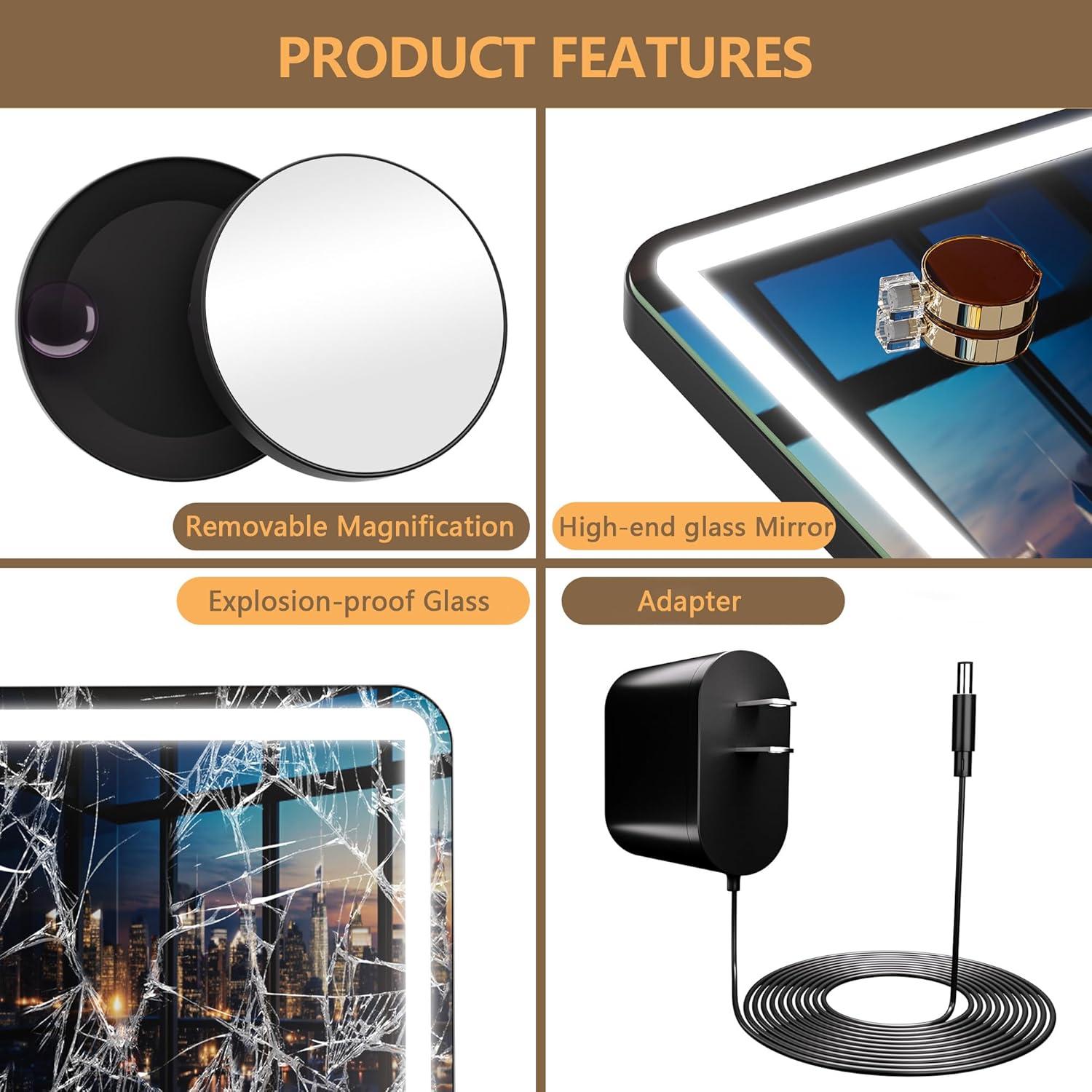 👍【Perfect Gift & Satisfaction Guarantee】This vanity mirror with lights is very suitable as a gift for girls who love beauty. Especially on birthday, Valentine's Day, Mother's Day, Christmas, etc.