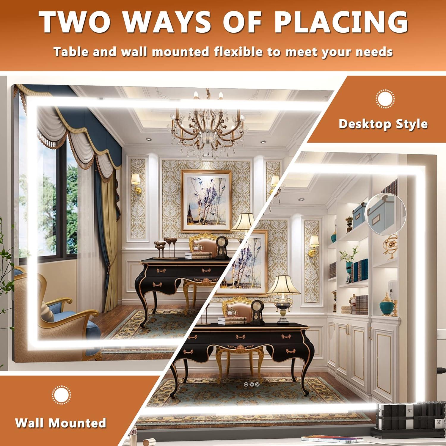 👍【Detachable Mirror Base & Hanging setting】Wall mounted or Table Top design meet your different needs.This large makeup mirror designed with detachable base and two back hole for nail. 1.Removing mirror base with a screwdriver. 2.Knocking two nails on the wall. 3.Hanging mirror on the wall.