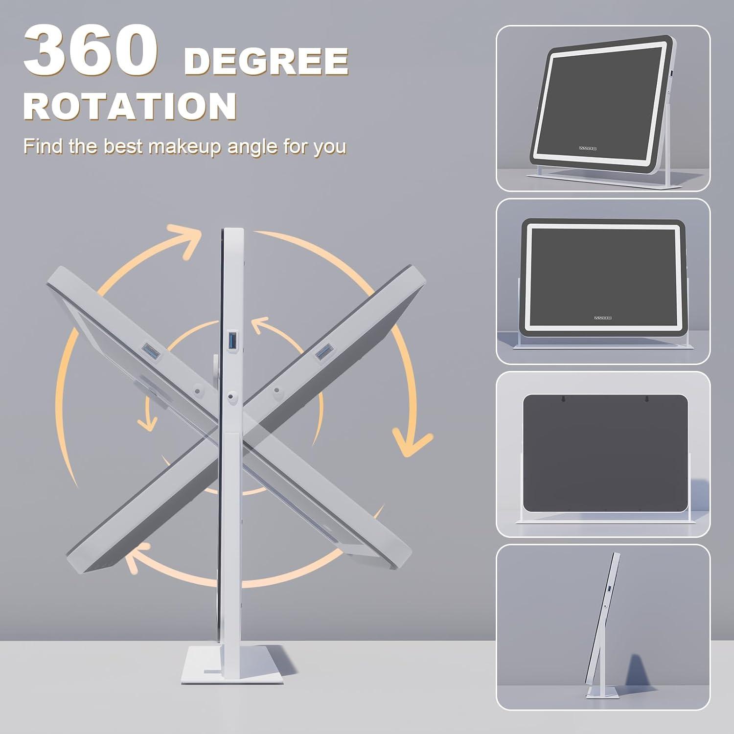 【𝟑𝟔𝟎°𝐑𝐨𝐭𝐚𝐭𝐢𝐨𝐧】360 degree free rotation can allows you to place this lighted make up mirror swiveled to each side easily and help you allows you to see more detail, convenient for you to select the best angle or position